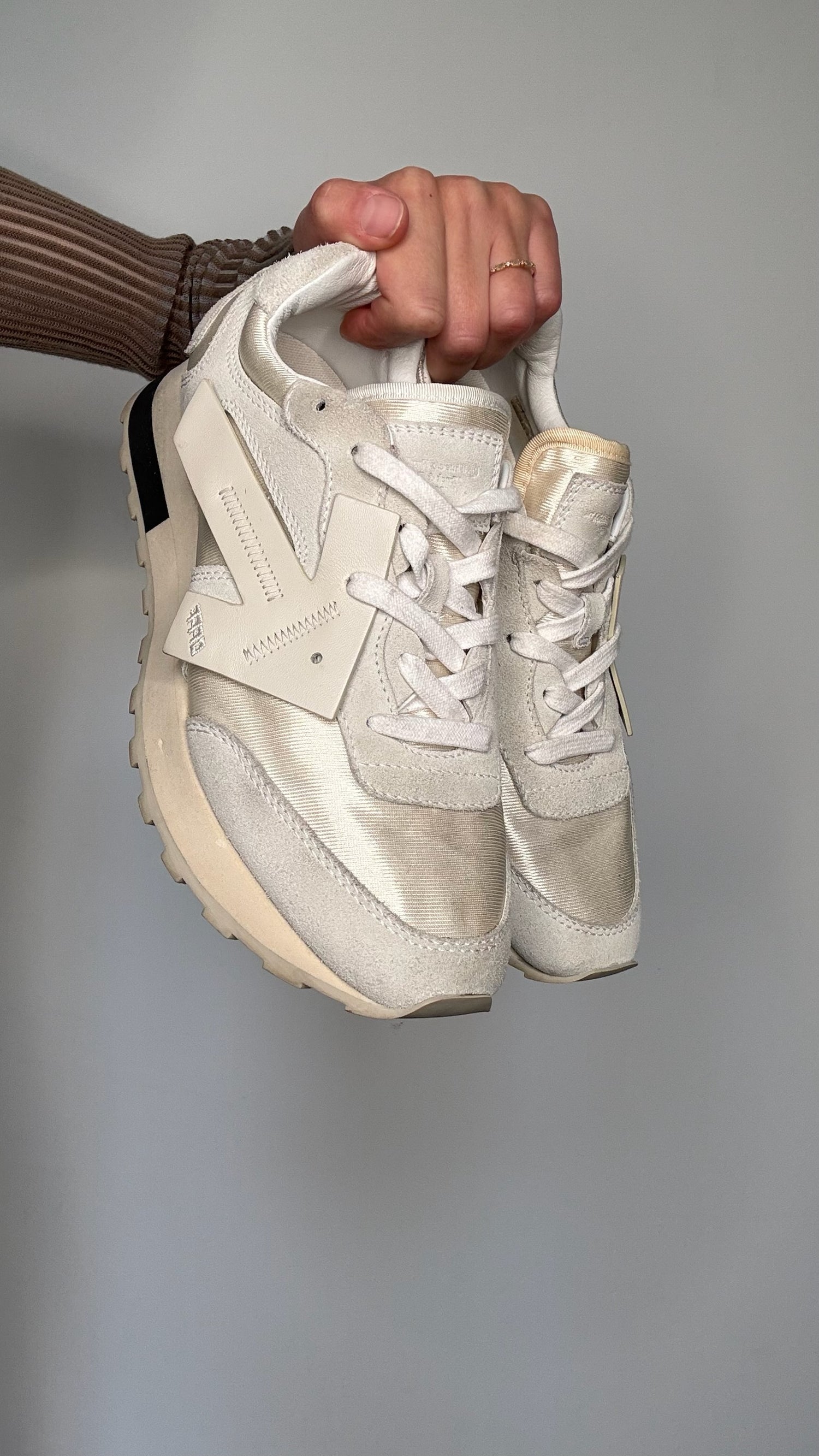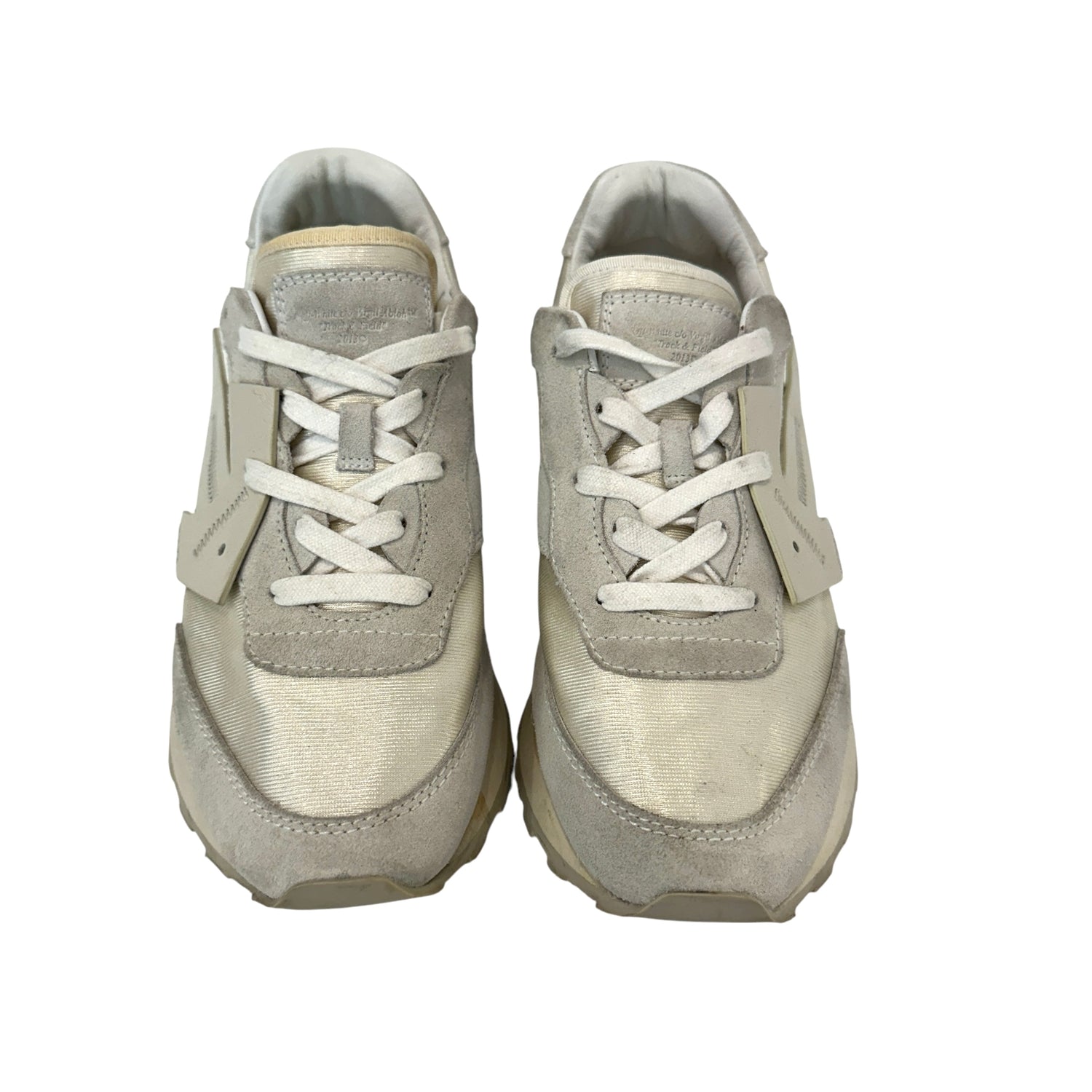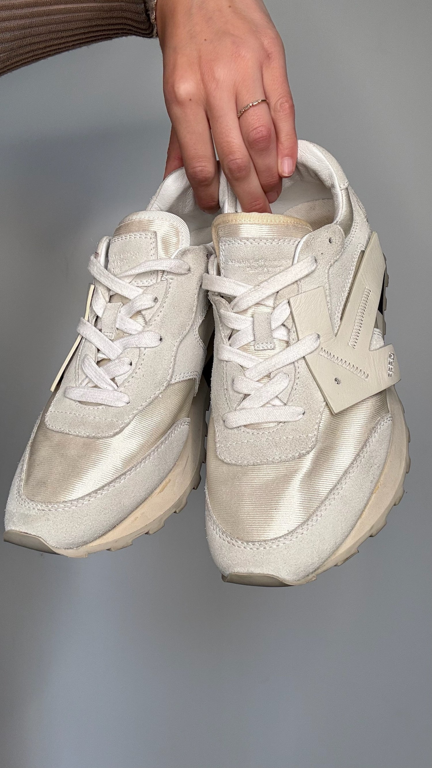 Off-White white and cream sneakers. Suede, leather and canvas. Laces at top. Designer size 40.