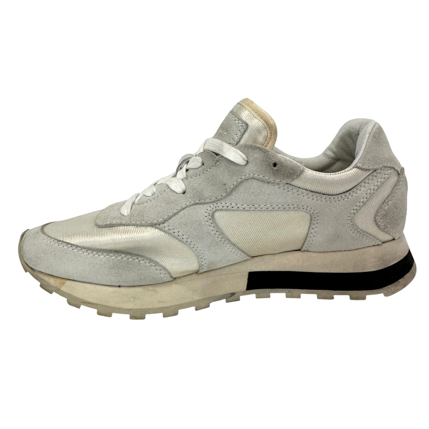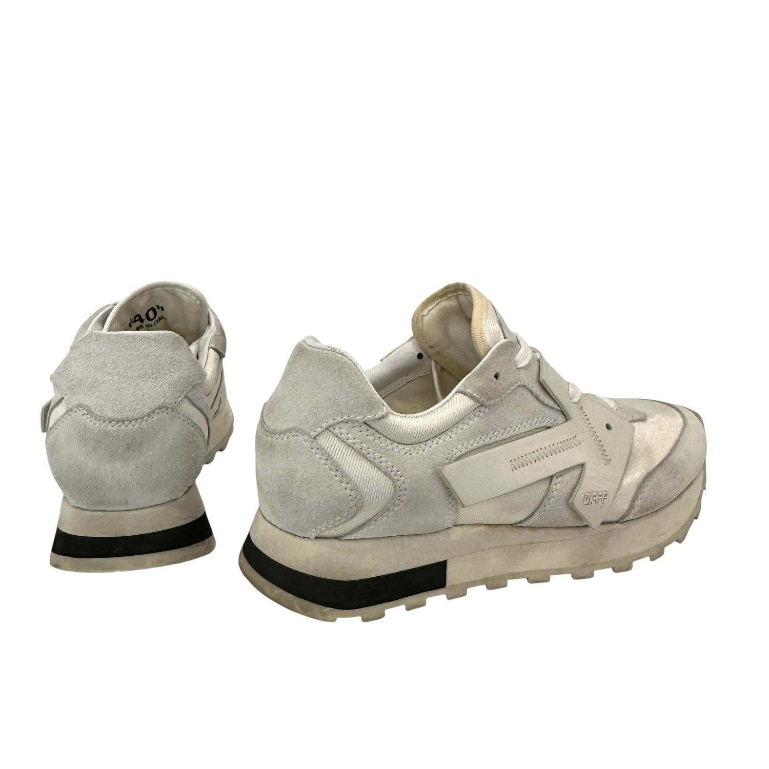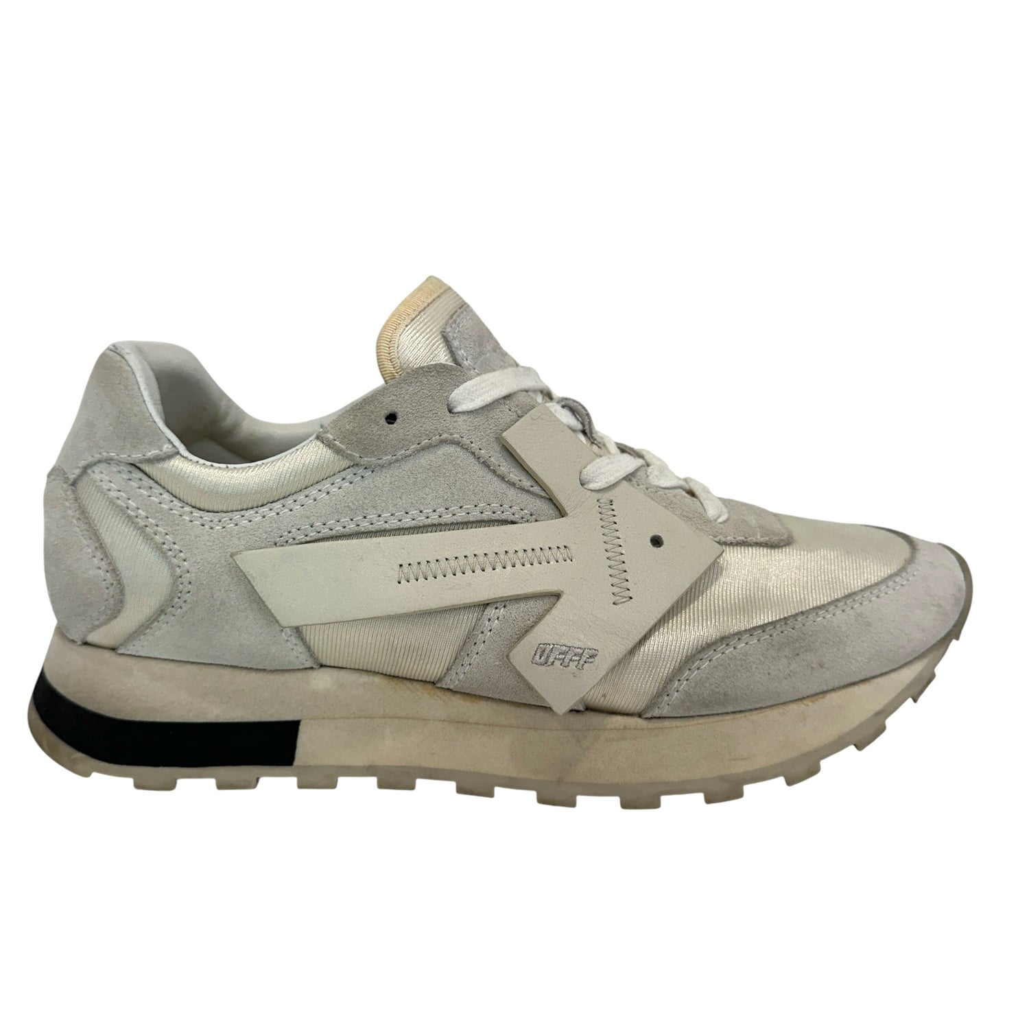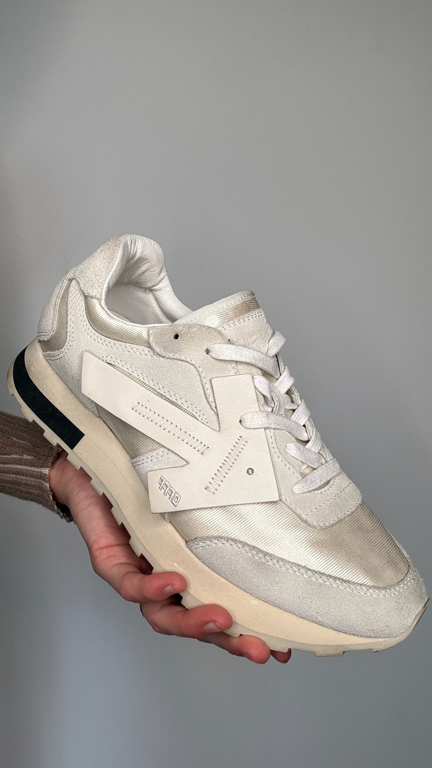 Off-White white and cream sneakers. Suede, leather and canvas. Laces at top. Designer size 40.