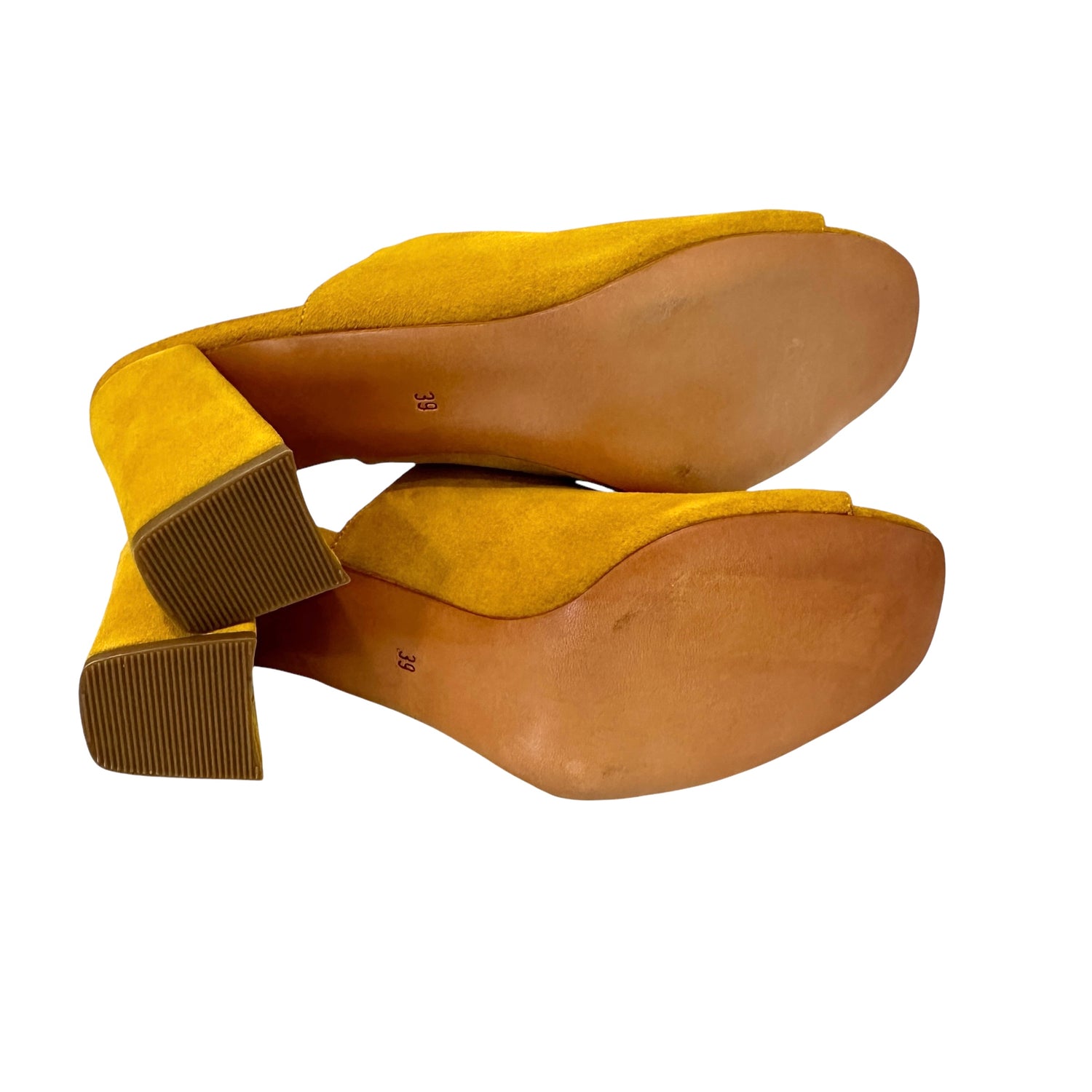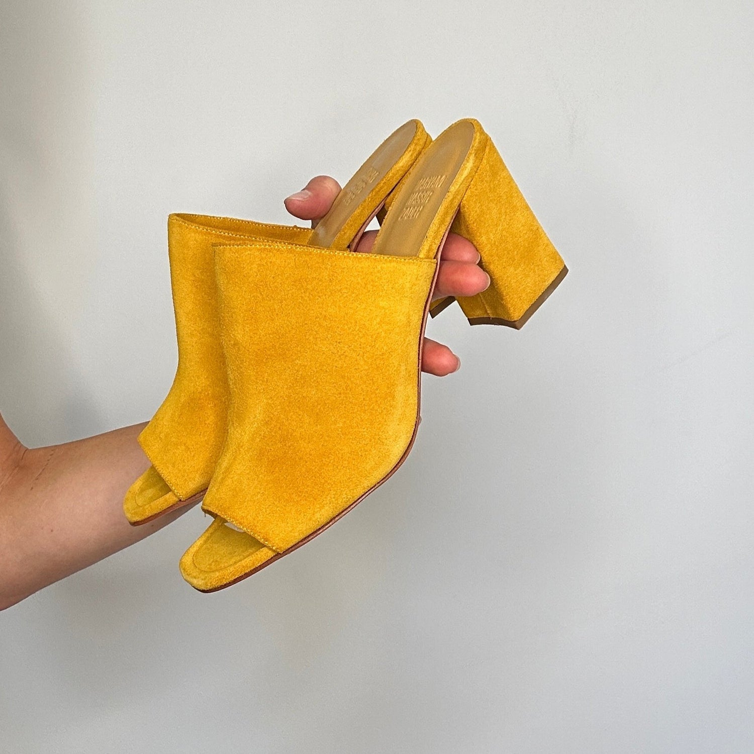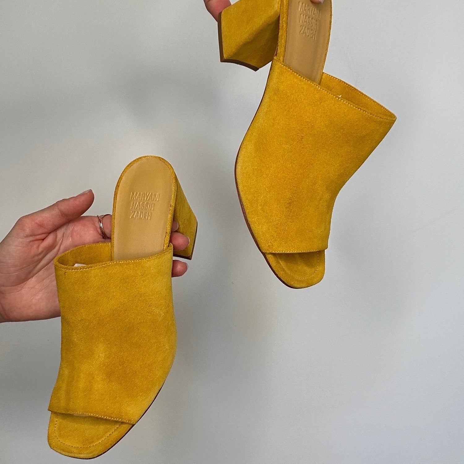 Maryam Nassir Zadeh yellow suede heeled sandals. Block heels. Designer size 39 (insoles 10")