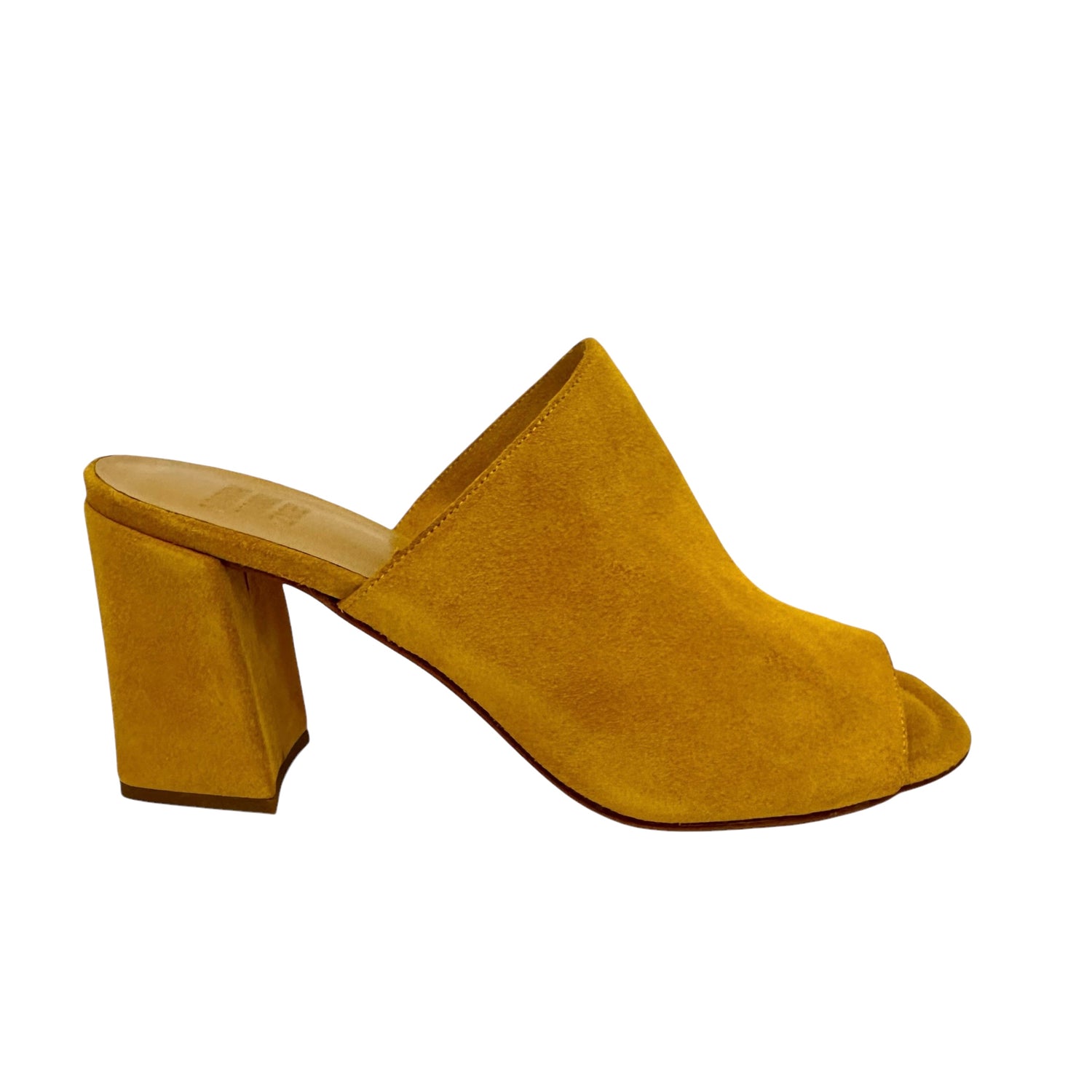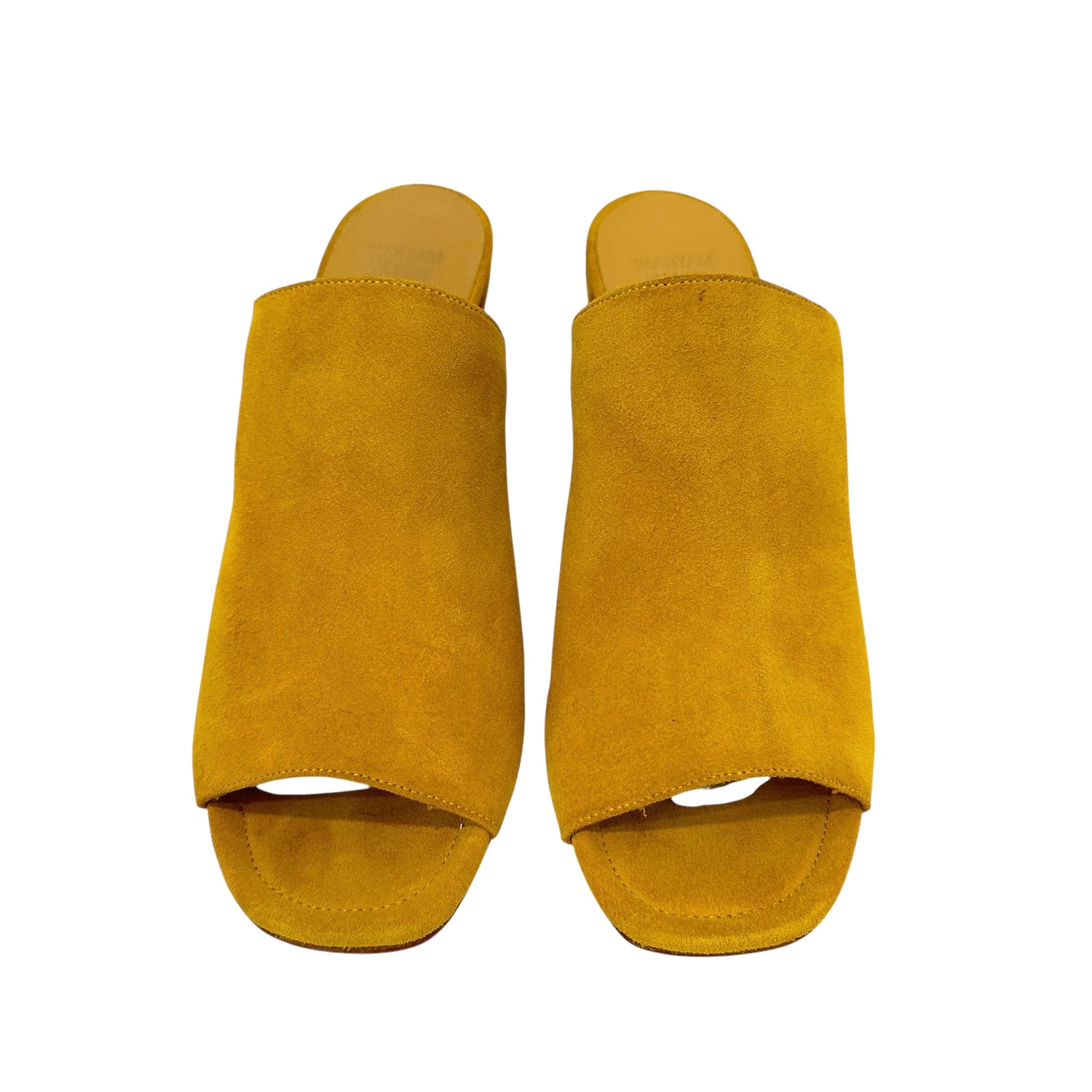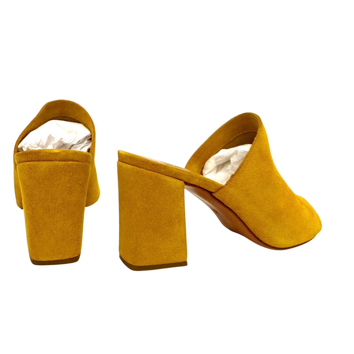 Maryam Nassir Zadeh yellow suede heeled sandals. Block heels. Designer size 39 (insoles 10")