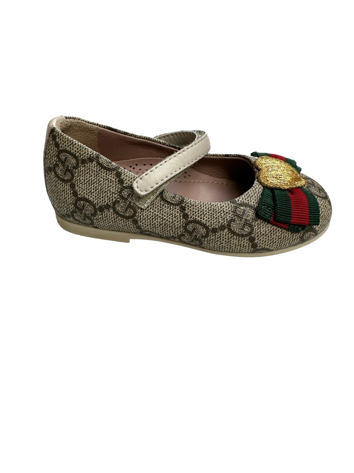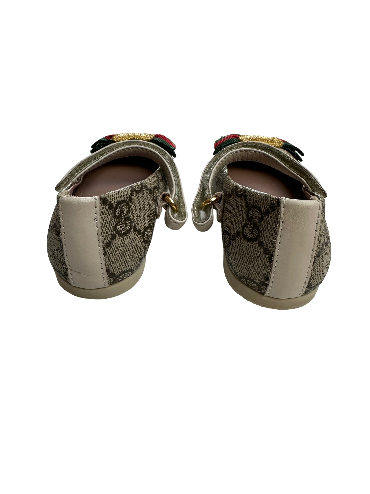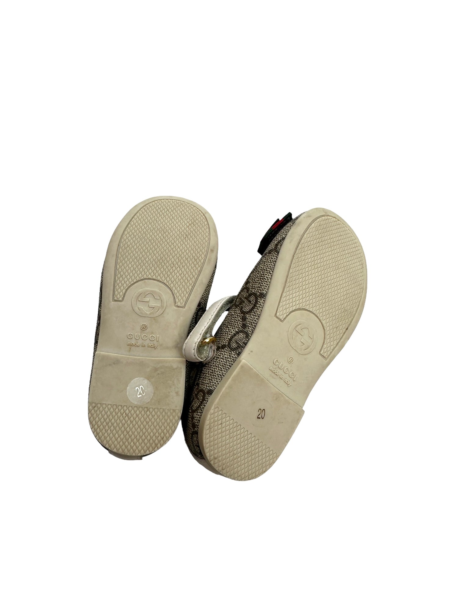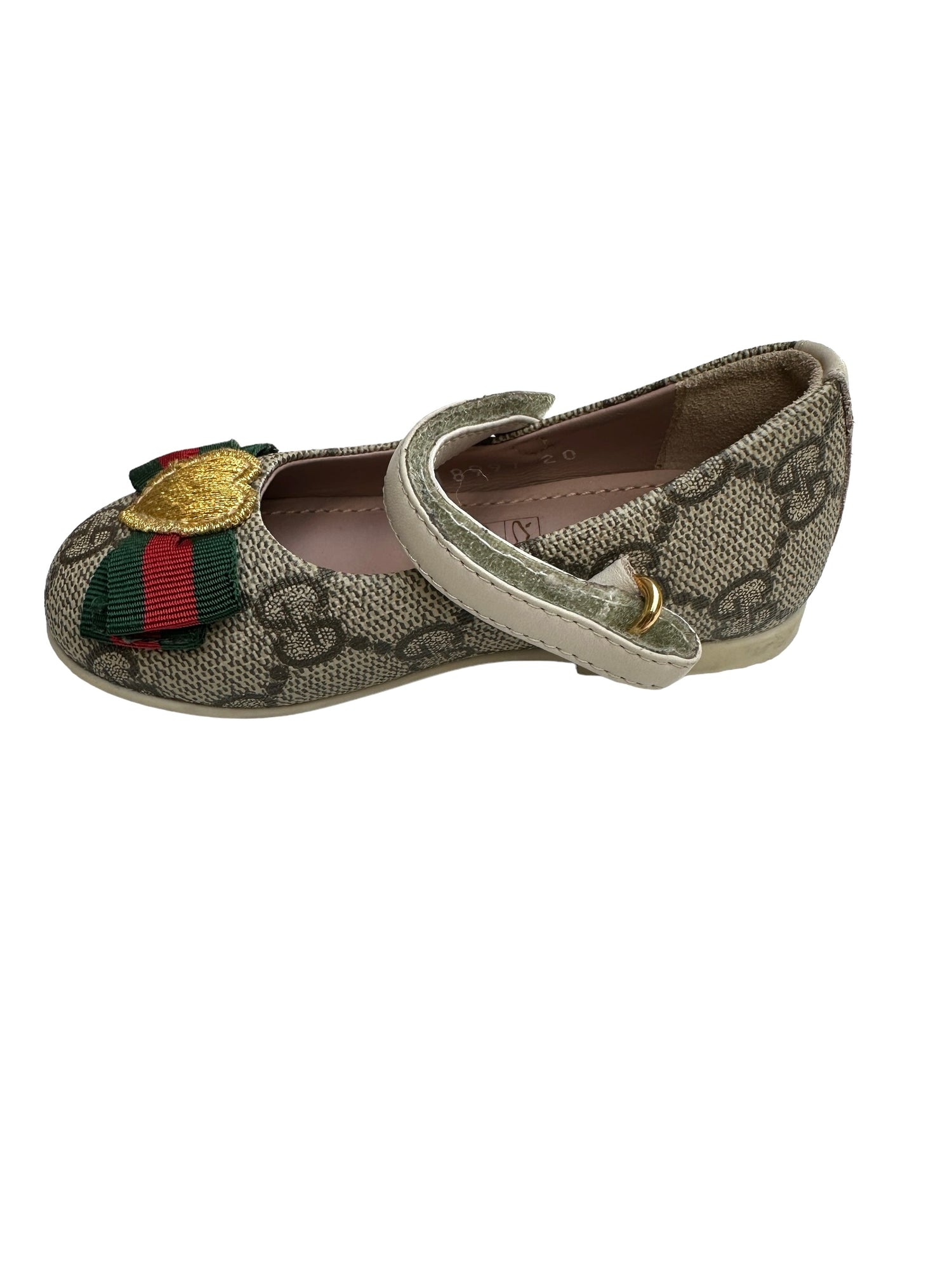 Gucci monogram loafers for toddler. Gold heart on top. Scratch closure at top. Designer size 20.