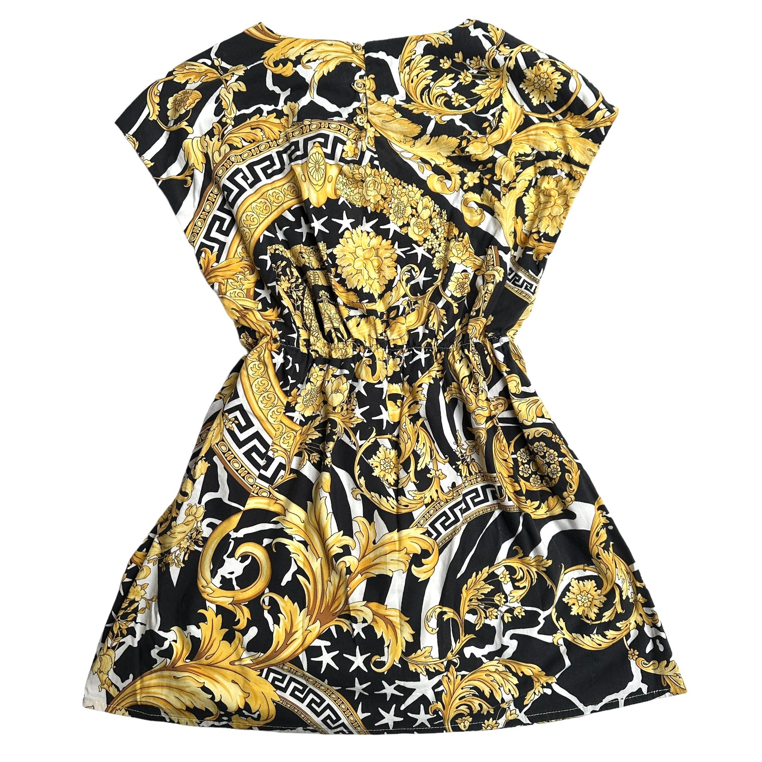 Versace girls' dress. Gold, black and white iconic Versace print. Buttons at back. Round collar. Size 10 year old.