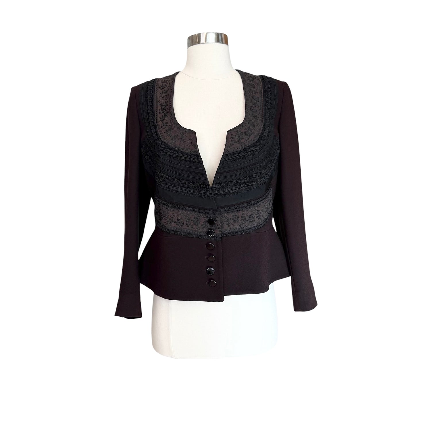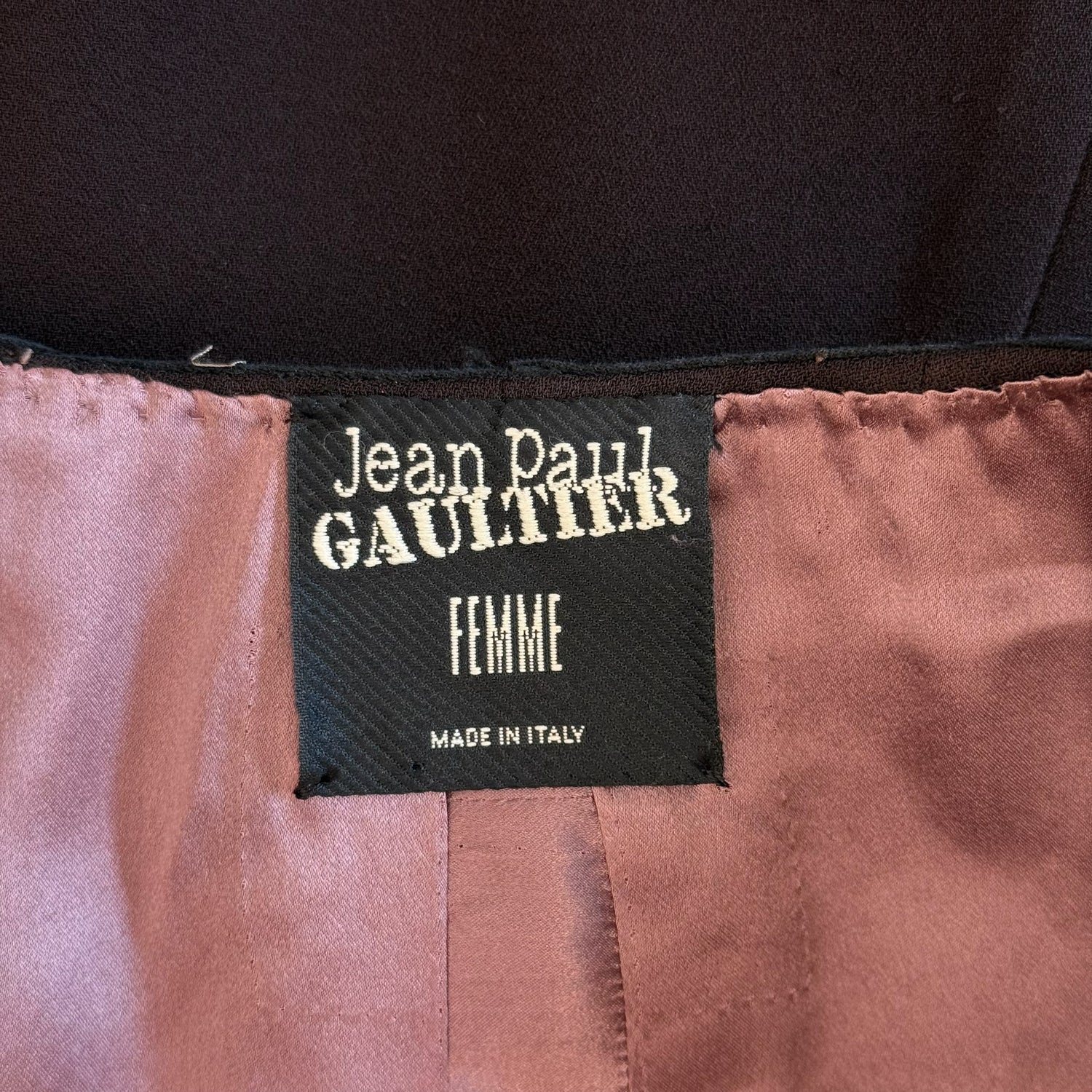 Jean-Paul Gaultier vintage jacket and pants set. Black. Silk lined. Embroidered jacket with button closure at front.