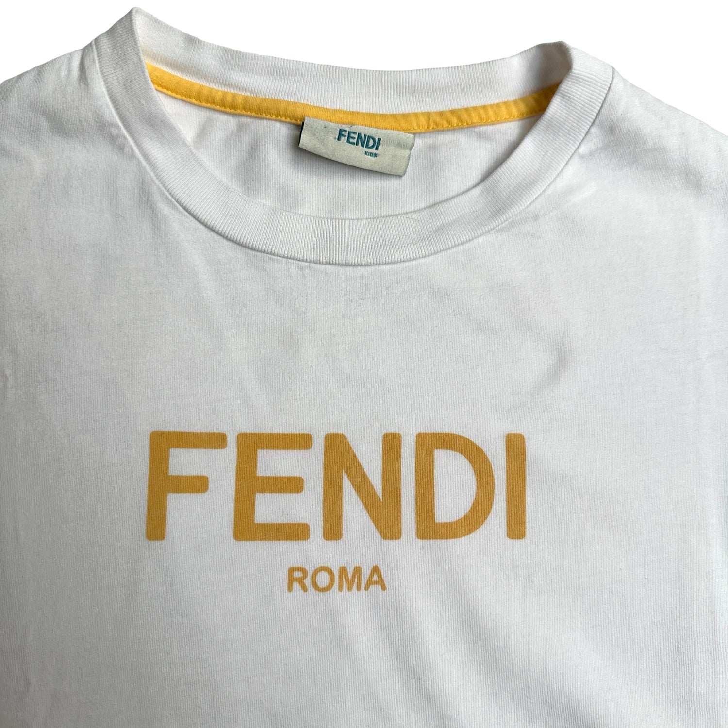 Fendi logo T-shirt. Unisex kid's T-shirt. Round neck. Short sleeves. Cotton. Designer size 10 year old.