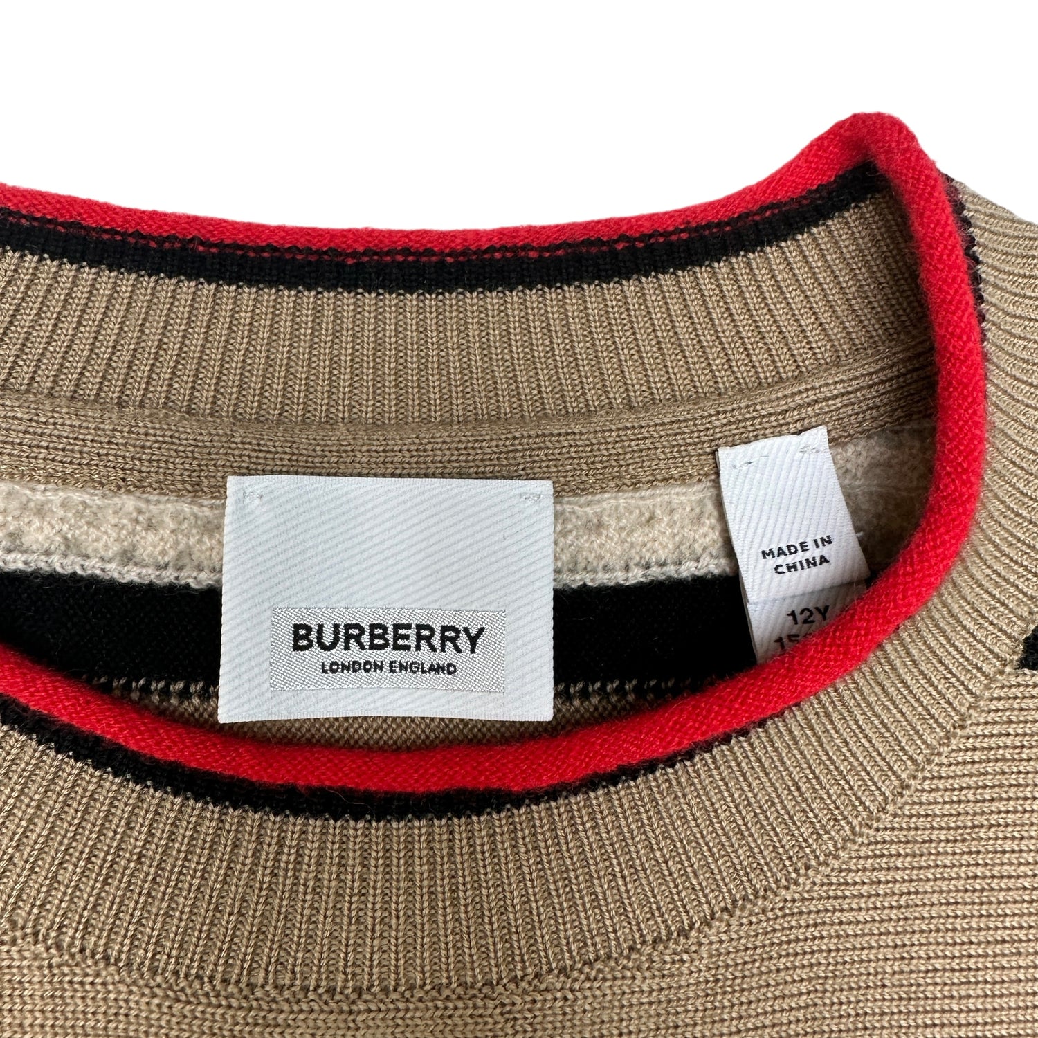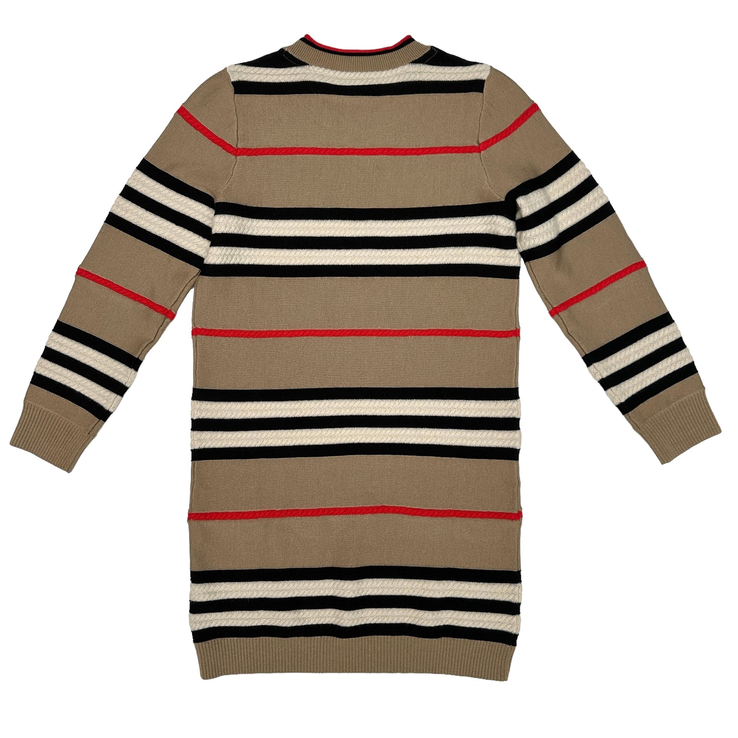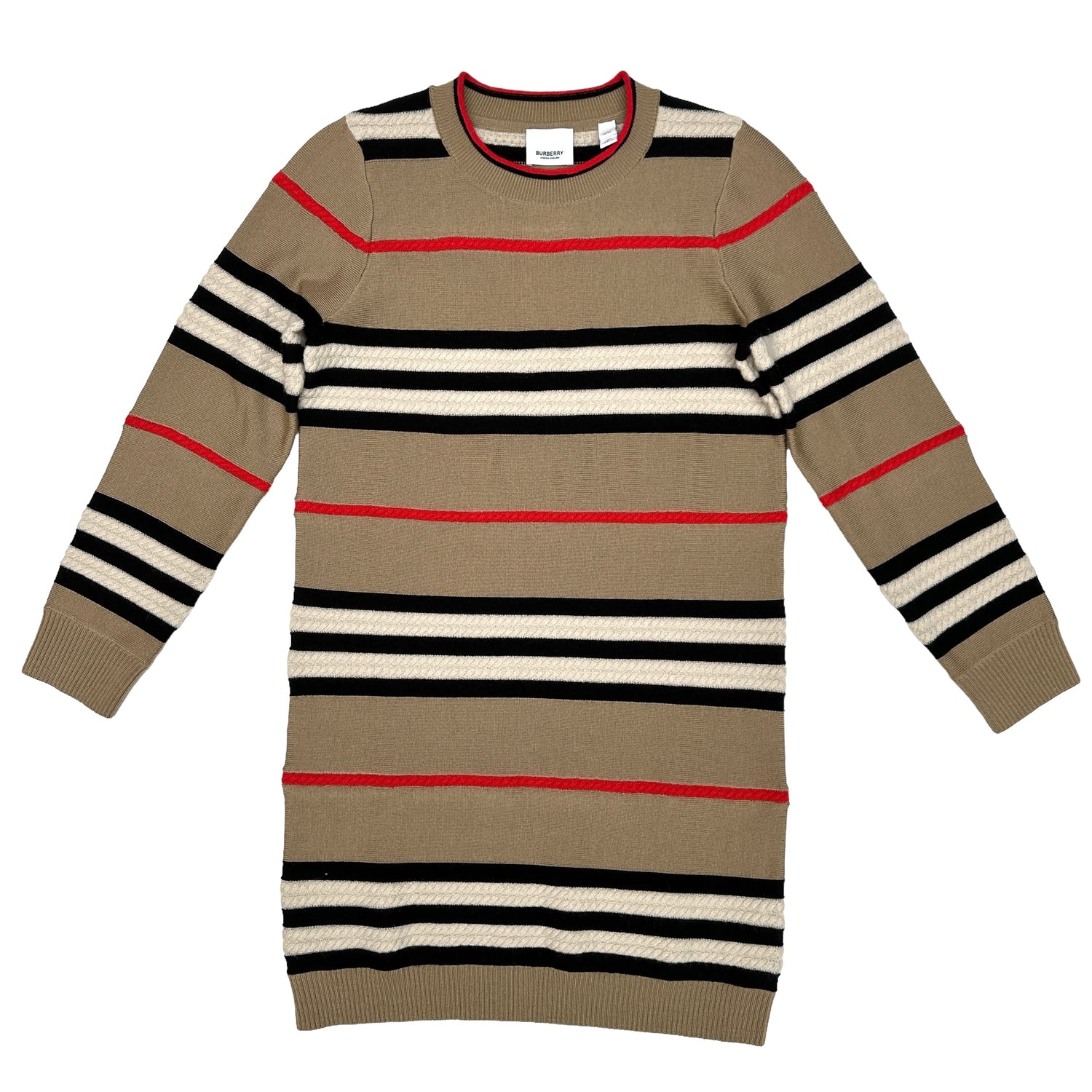 Burberry sweater dress. Iconic red, black and cream stripes. Round neck. Long sleeves. Designer size 12 year old (size like a petite).