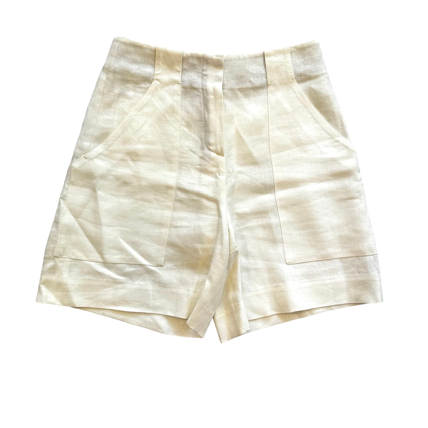Loro Piana white linen shorts. Classic and chic to have as a staple in your closet for hot days and summer escapes. Two pockets. Designer size 40.